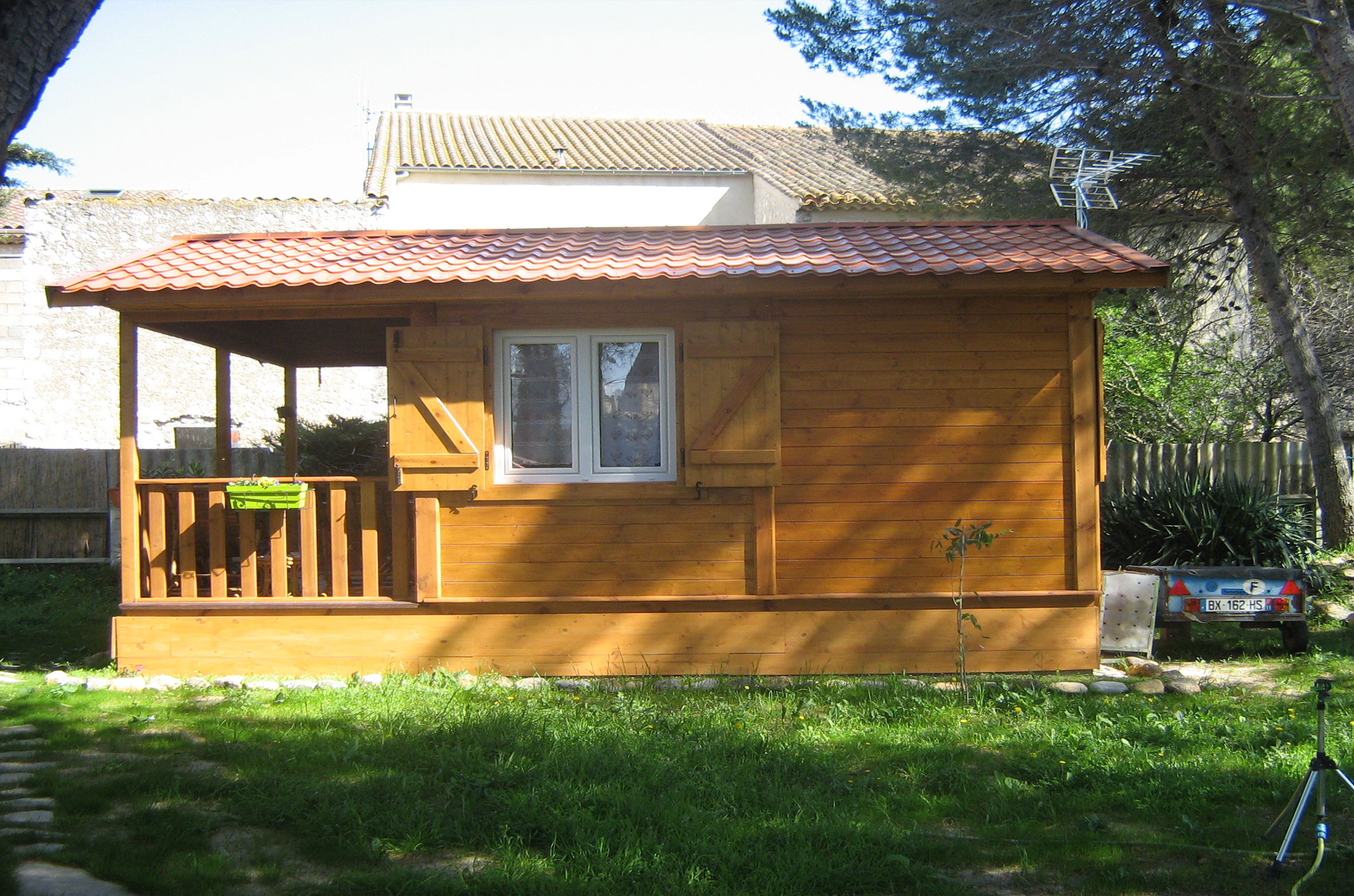 Chalet de 27m² en bois pour 2 personnes situé dans le jardin d'une propriété individuelle.